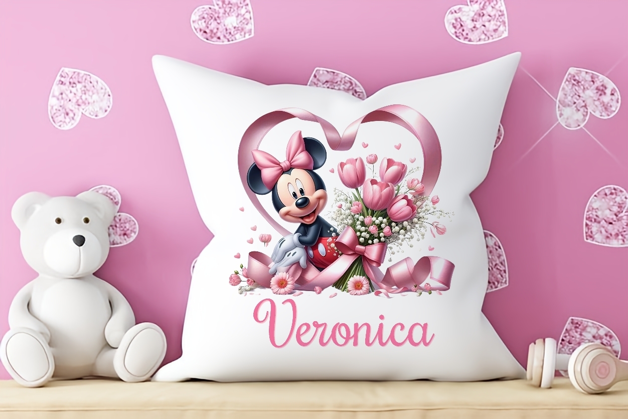 Almofada Minnie com flores Personalizada com nome
