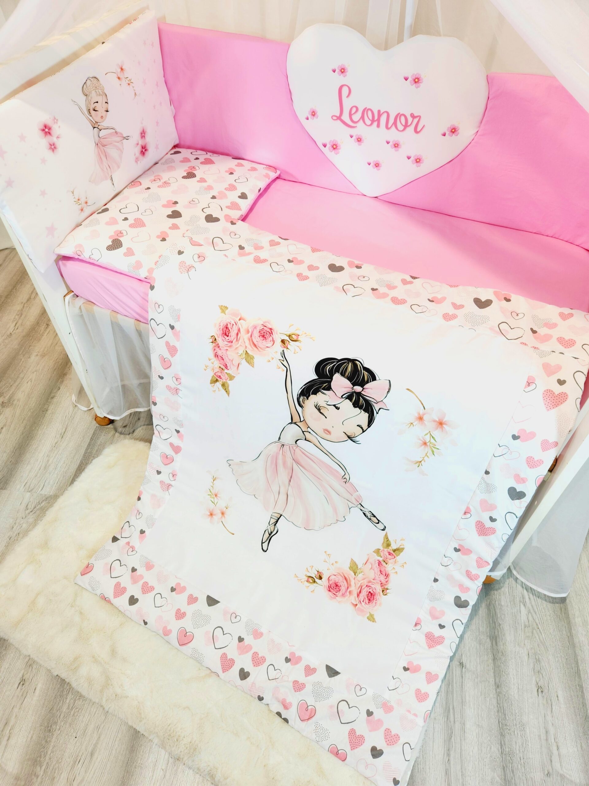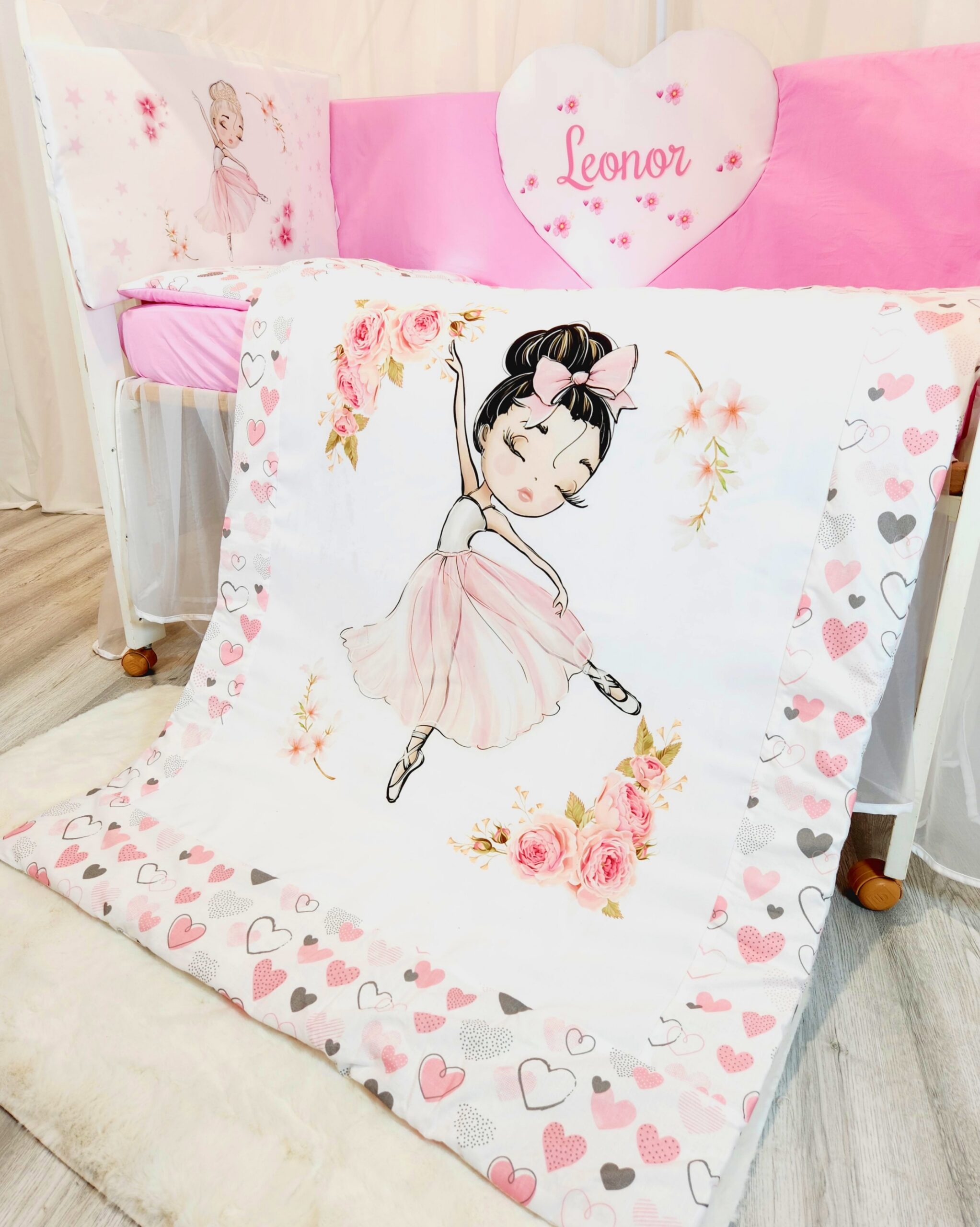 Conjunto Conforto «Bailarina Corações cinzentos e rosas»