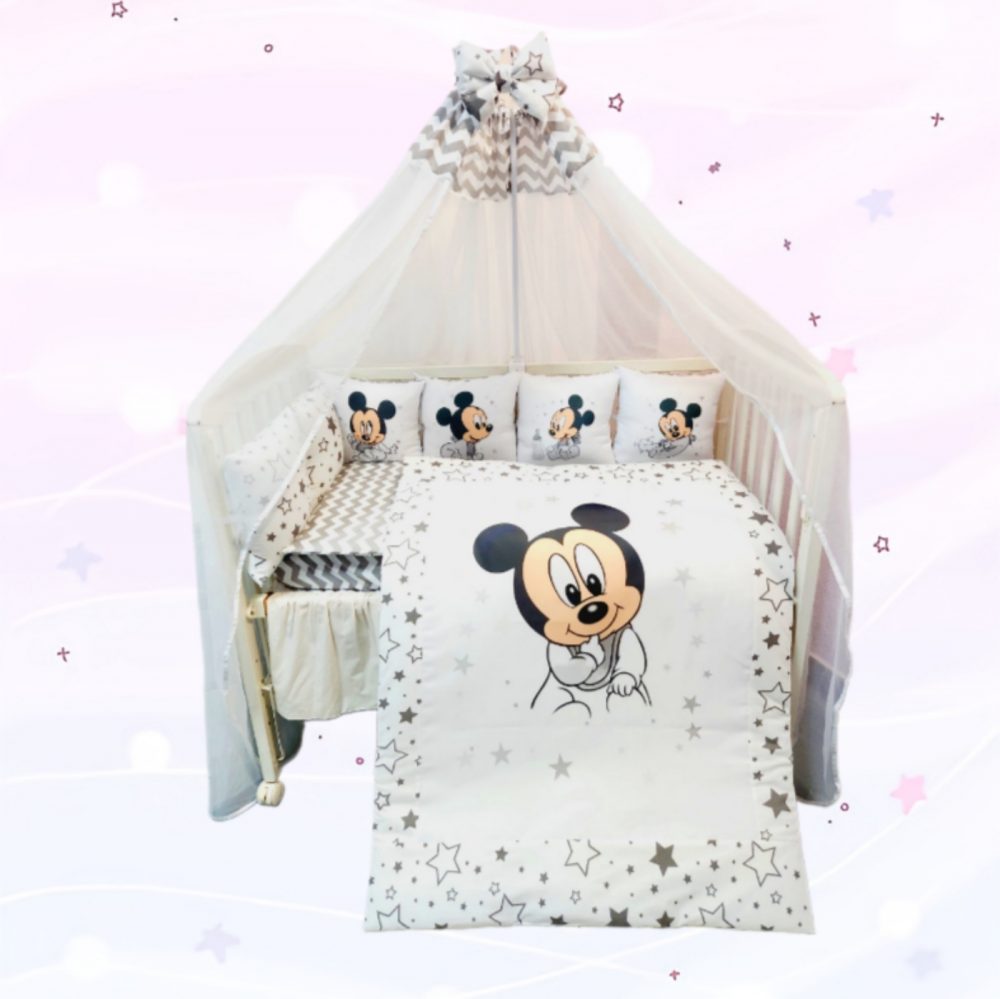 Conjunto 8 peças «Mickey com zig zag cinzento»