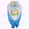 Permite manter o bebê confortável e seguro na cama, no chão ou no mesmo berço.