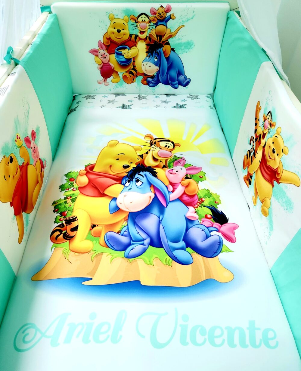 Modelo Proteção total «Winnie com estrelas verde água»